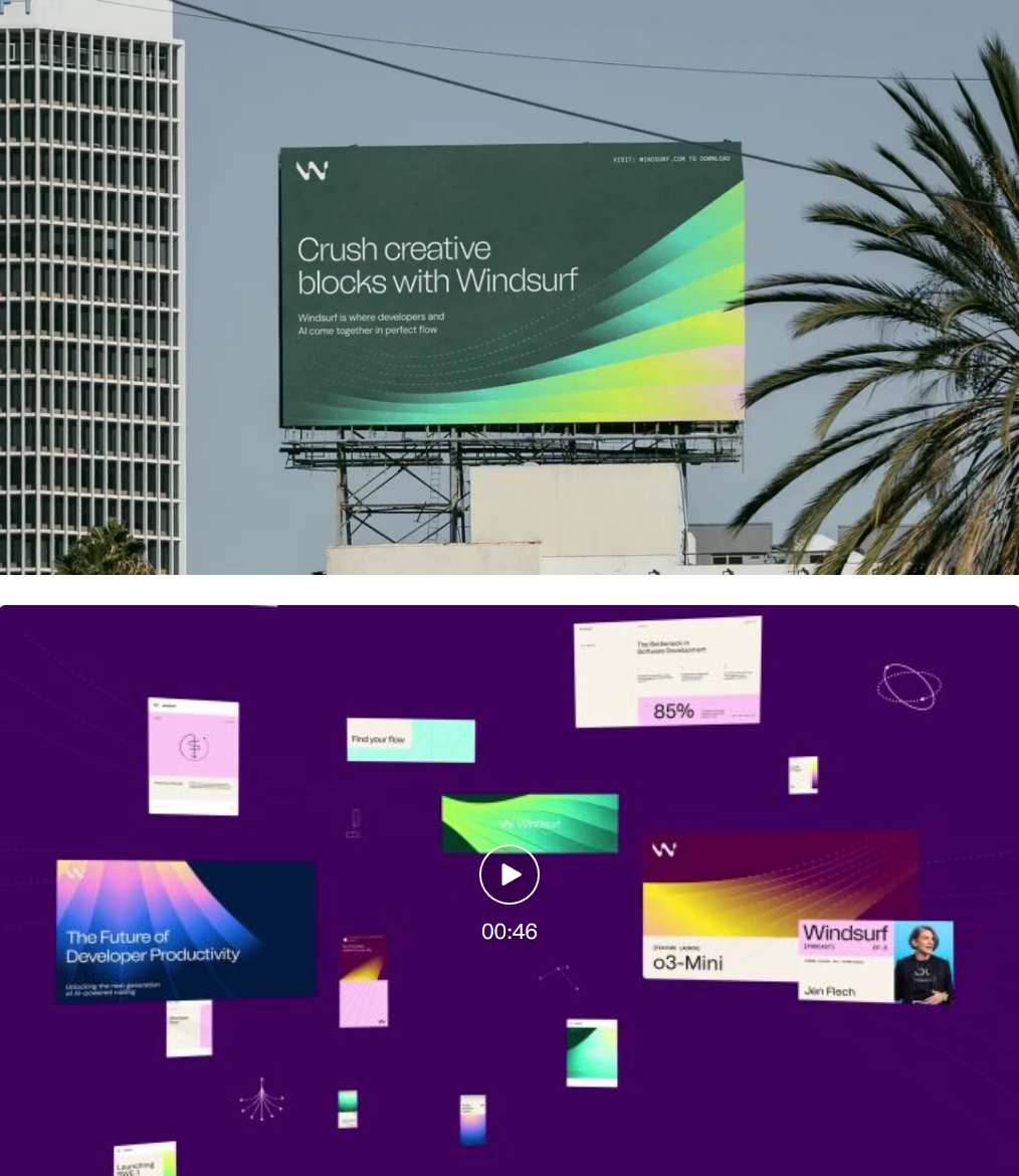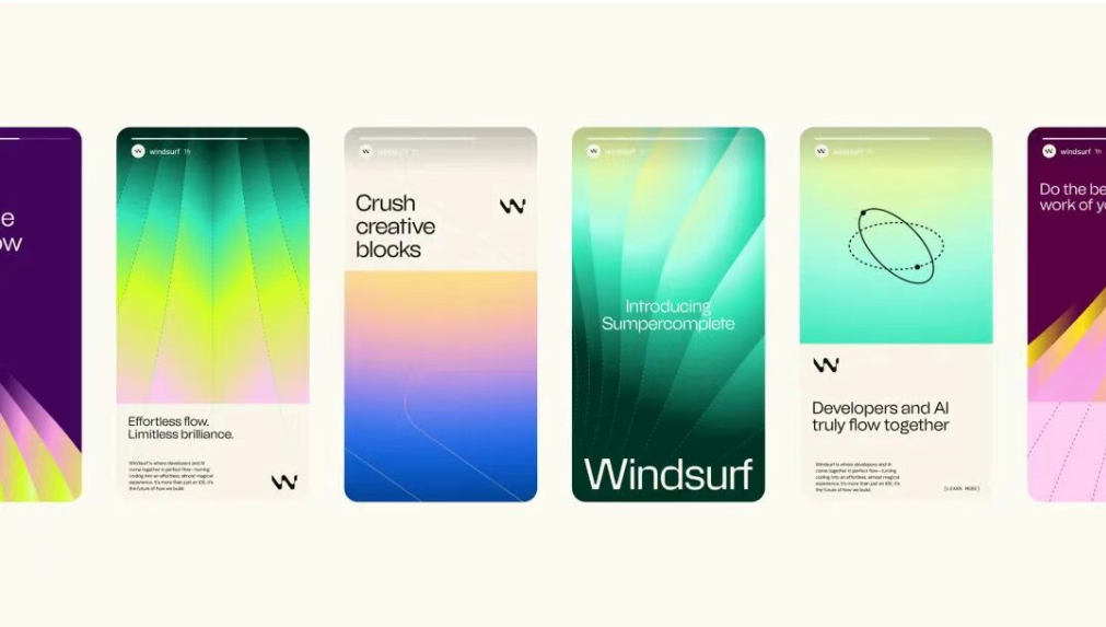 Windsurf 为超过一百万的软件工程师提供 AI 工具,帮助他们通过所谓的无缝 AI 协作加速编码流程。但他们原有的黑底配青绿色点缀的品牌形象显得过于沉重,难以承载一个已不再局限于基础代码生成的产品定位。