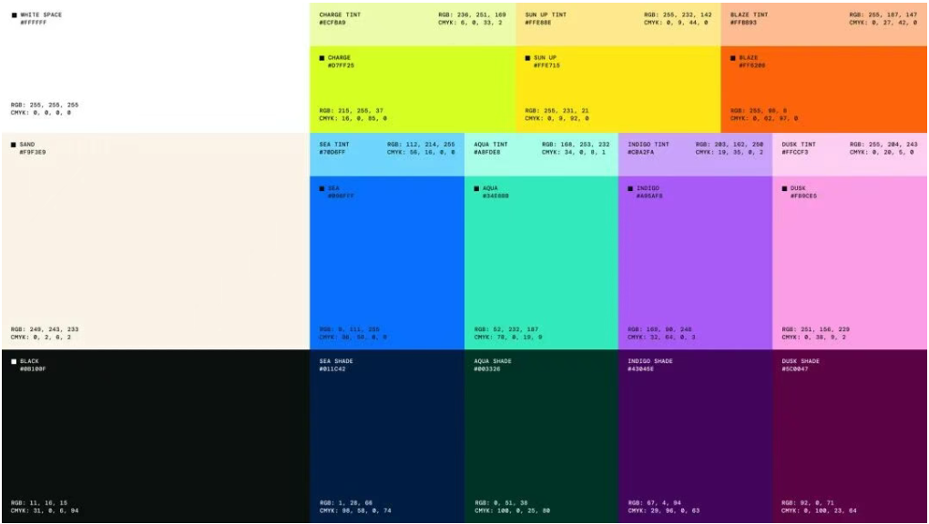 这种渐变色的灵感来自现实中的风帆设计。Darbishire 解释说,风帆通常采用明亮的荧光色,以便在水面上清晰可见,这也构成了风帆运动独特的视觉语言。他进一步表示,新形象让人联想到一家风帆运动品牌,而这是他们希望传达的方向。他们有意跳出传统科技品牌的模板,选择了一种更具辨识度和个性的表达方式。