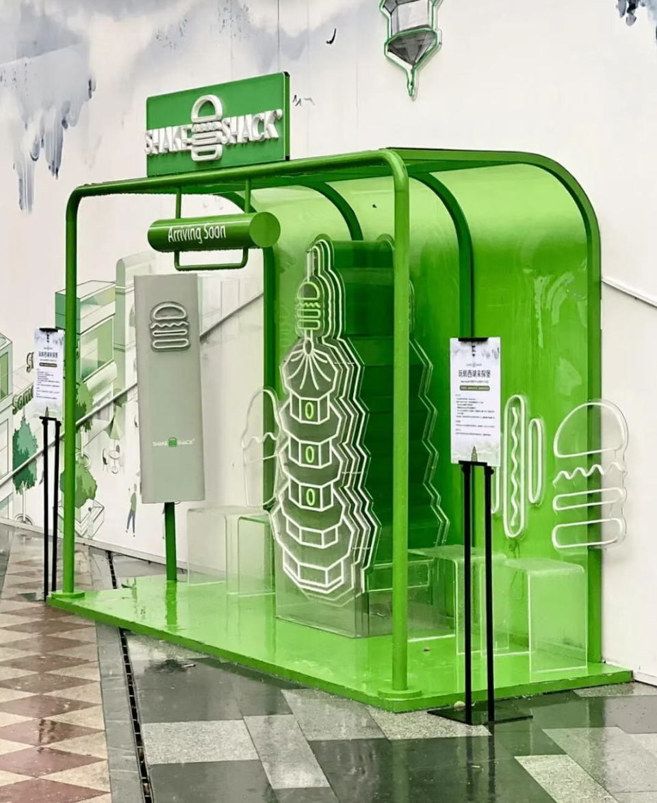 无独有偶,SHAKE SHACK 杭州门店的围挡设计中,也运用到了西湖景观,无论是墨色山水,还是雷峰塔体,都是品牌在地设计的新尝试。