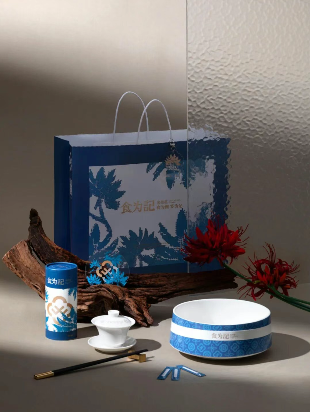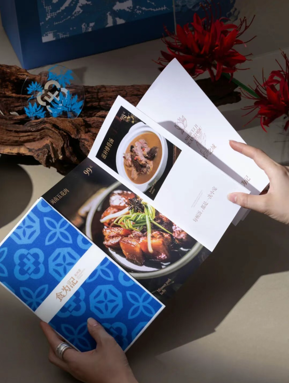 品牌不再只是装饰性的背景元素,而是被赋予“文化印章”的功能:它出现在碗碟边缘、菜单封面、礼盒包装,甚至空间的墙体与地面材质上。