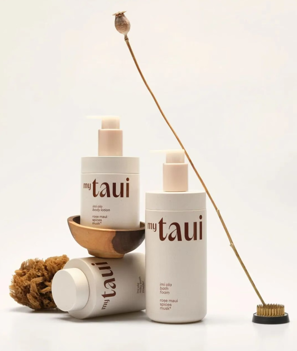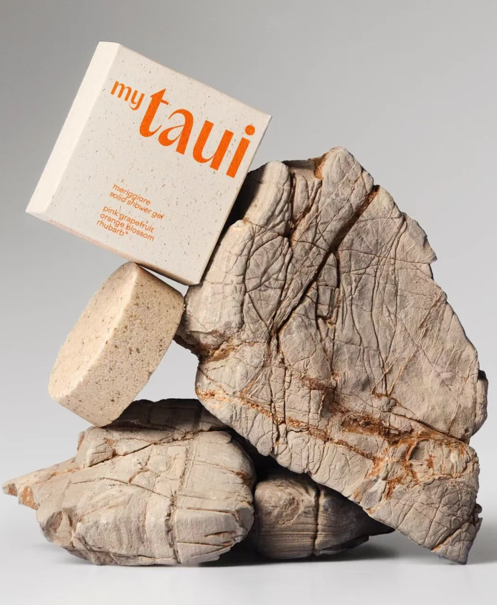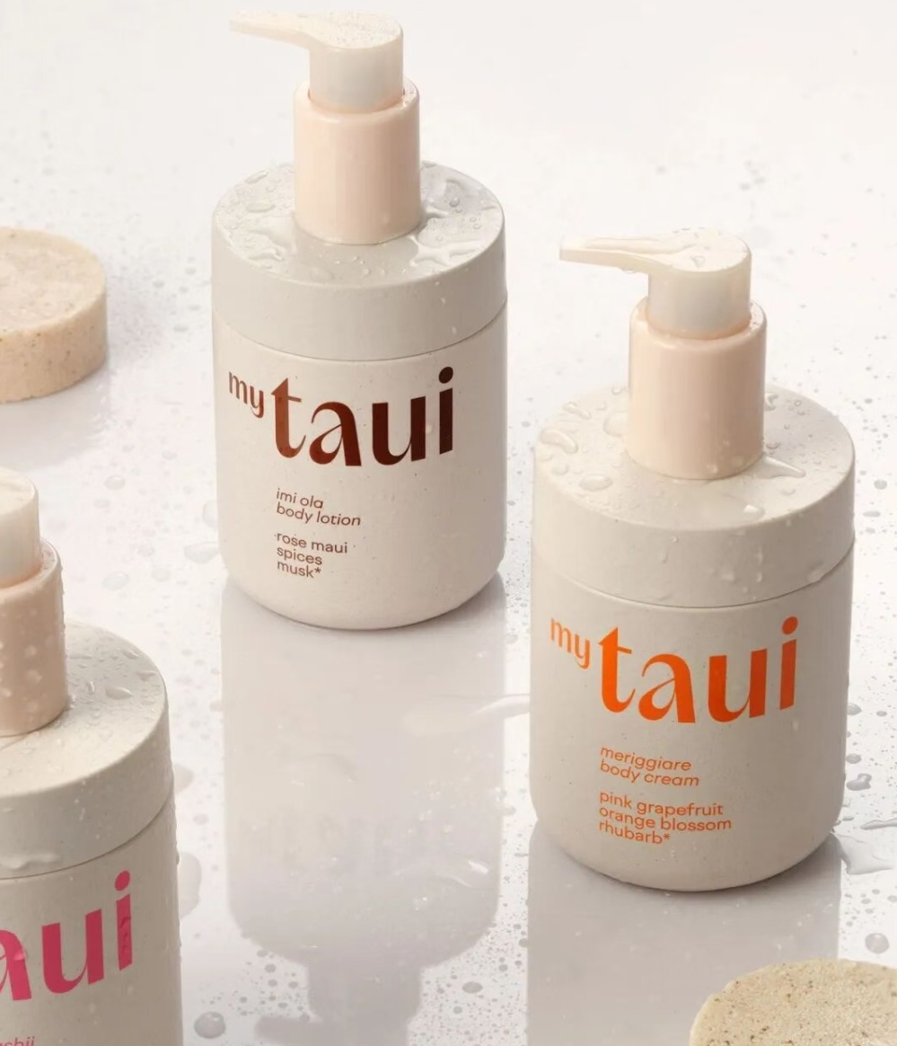 myTAUI 身体护理系列包装,整体设计围绕“护理即仪式”的理念展开,哑光瓶身搭配独特的斑点纹理,不仅营造出极具触感的表面,让人在触碰时便能感受到产品的天然与纯粹,更通过纹理的层次感呼应圣托里尼火山沙等天然成分的原始质感,仿佛将大自然的馈赠浓缩于包装之上。简洁的造型设计刻意弱化多余装饰,以此凸显醒目的品牌标识,让 myTAUI 的品牌形象在第一时间映入消费者眼帘,传递出极简而不简单的品牌态度。