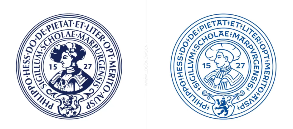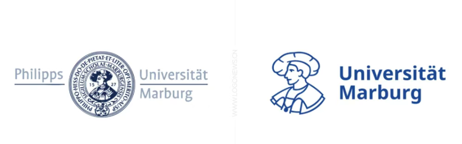 字体也由原来的Profile Pro更换为更为现代、国际通用的Noto Sans。尽管大学正式名称「Philipps-Universität Marburg」仍然保留,但在LOGO中省略了「Philipps」一词,旨在提升国际辨识度,同时增加了英文版「Marburg University」。