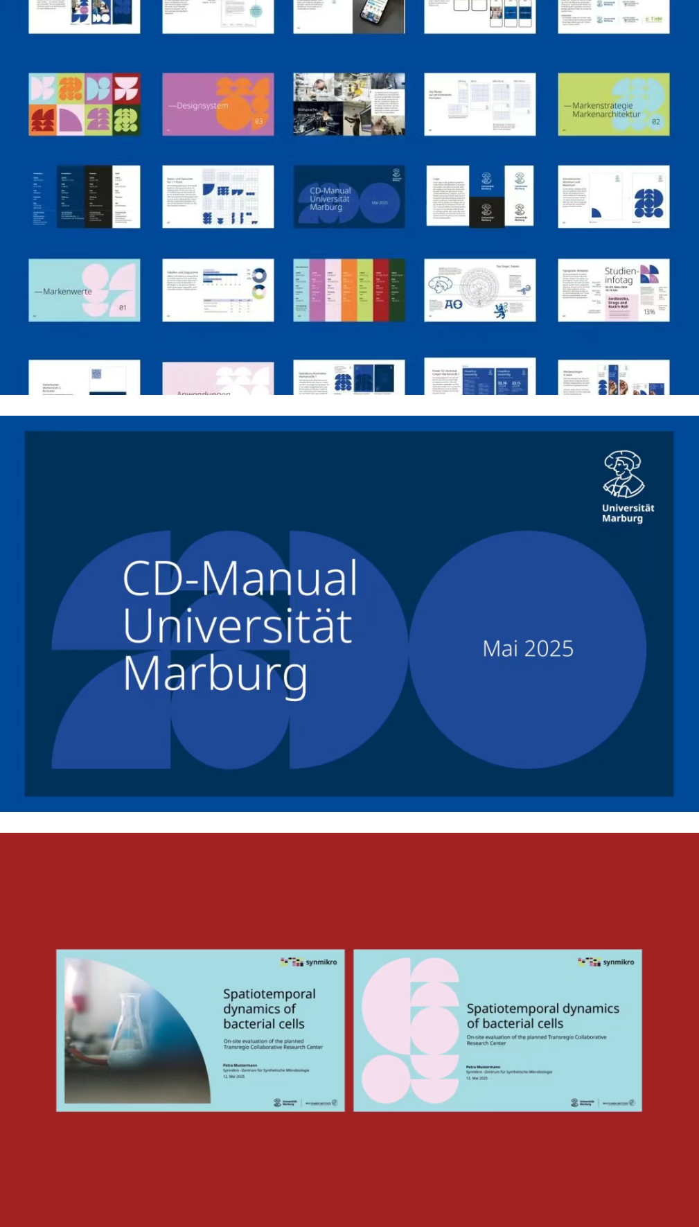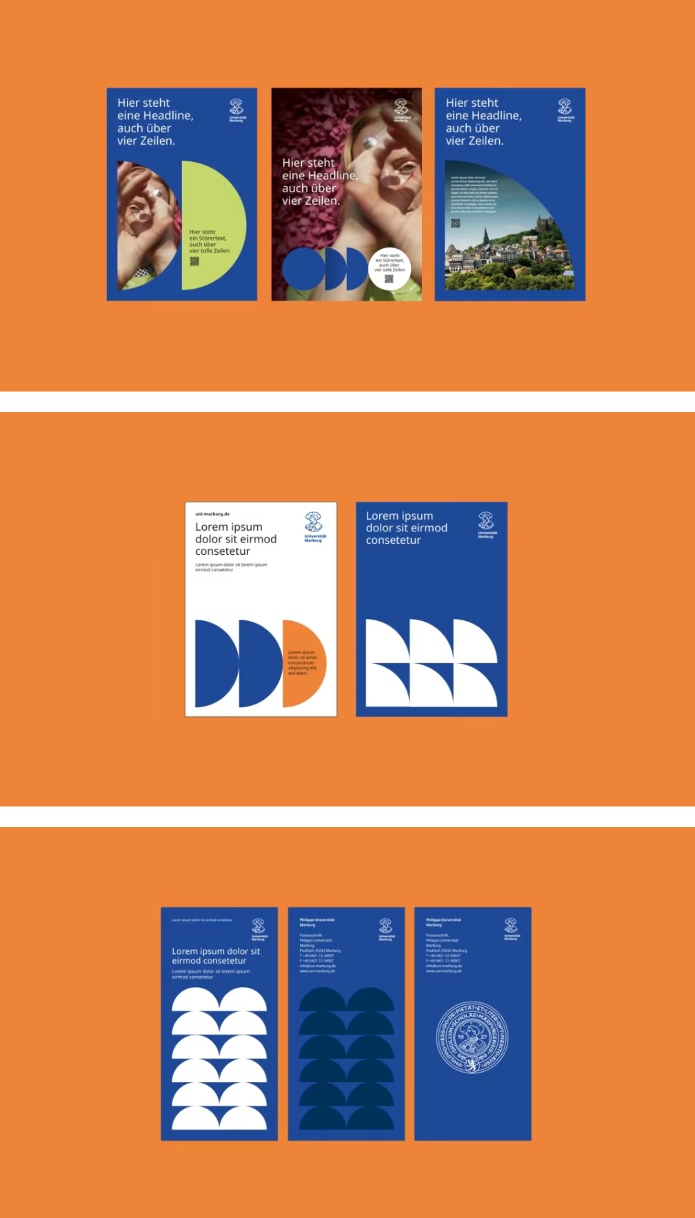 色彩方面,马尔堡大学继续保留代表性色彩蓝色,但色调有所调整为更明亮、更饱和的蓝色。接下来几个月,该设计系统将逐步应用于校内外各类媒体,强化马尔堡大学的品牌一致性与可识别度。