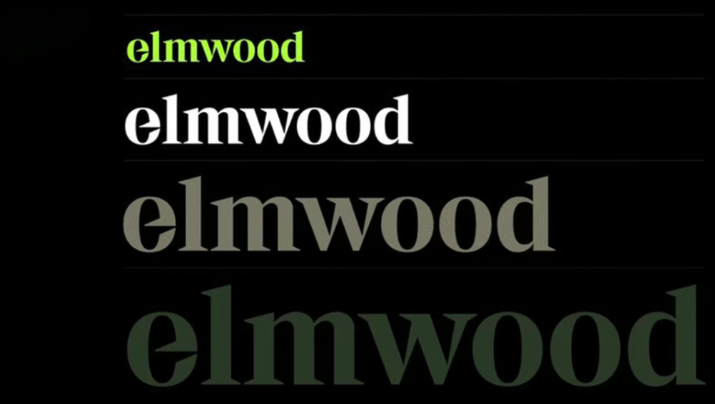 在构建视觉体系时,通过对Elmwood品牌历史进行了评估,确保新形象在传承过去的基础上,面向未来做好准备。重新打造的配色方案中,既有 Elmwood 品牌历史中名为 “炽热绿”(hot elm)的明亮、充满活力的青柠绿,也搭配了公司更为深沉的传统绿色(近乎黑色,富含大地色调,充满深稳感)。