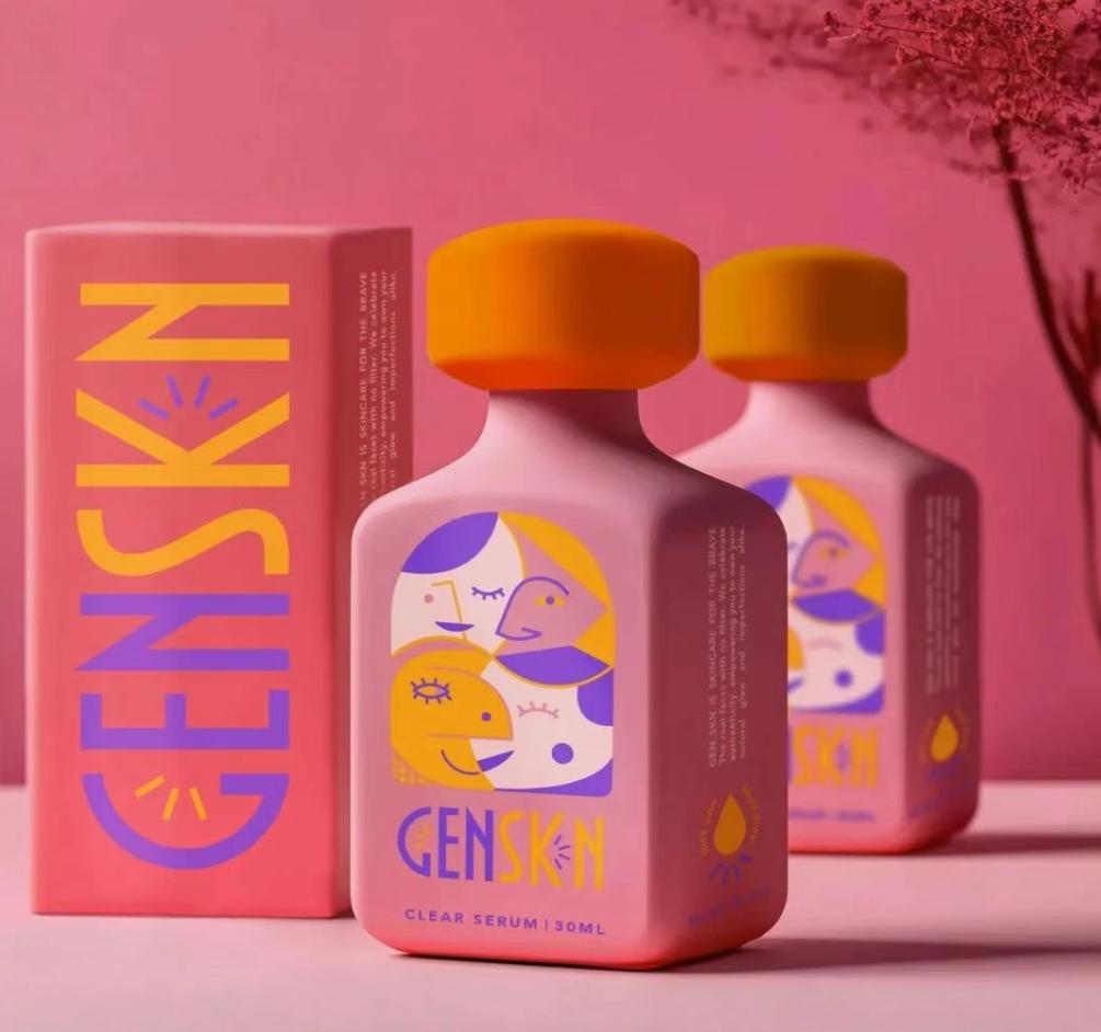 哑光瓶身包裹着柔和却饱满的粉彩色调,搭配的超大彩色瓶盖,添了几分灵动俏皮,却丝毫不减高端质感。醒目的品牌logo居于中心,让每一件产品都化作可握于掌心的迷你艺术品。 奢华中透着现代气息,自信里藏着不落俗套的个性——GenSkN早已超越了护肤品的范畴,它是一份关于自我认同的宣言,更是一场对多元之美的盛大礼赞。