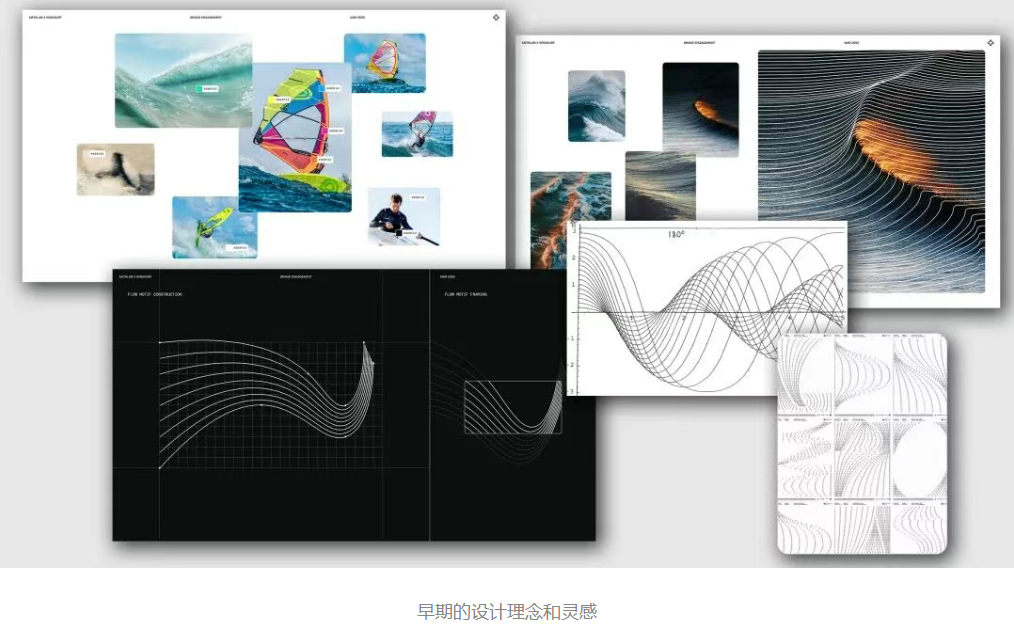 Metalab的团队还开发了一整套渐变系统,配合虚线语言与图形组合,为 Windsurf 设计师在未来应用中提供统一规范。这套色彩方案不仅具备运动美学,还能够贯穿整个用户体验界面。