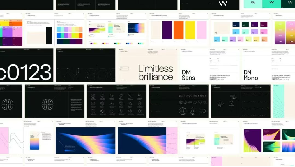 品牌设计总监 Jordan Darbishire 表示,团队的核心目标是将自然感与技术感相融合。为了实现这一点,他们采用了波浪形的渐变色,引导视觉流动,同时融入蓝图元素,既传达了工程精度,又增加了人性化的温度。