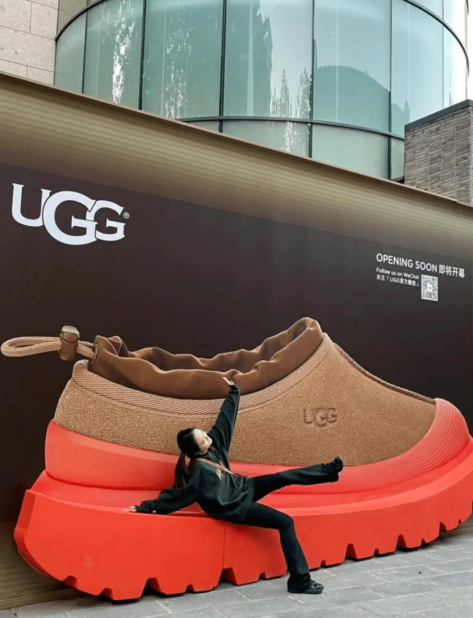 而随着创意的不断发散,如今越来越多品牌,倾向于将围挡打造成独具特色的户外艺术装置。不用另觅投放环境,又与线下销售端口有着极近路径,叠加巧妙营销设计,不仅能够实现品牌价值沟通,还能吸引用户参与互动。看看 UGG 这个“又鞋又椅”的创意设计,这下谁还分得清围挡和快闪店的区别呢。