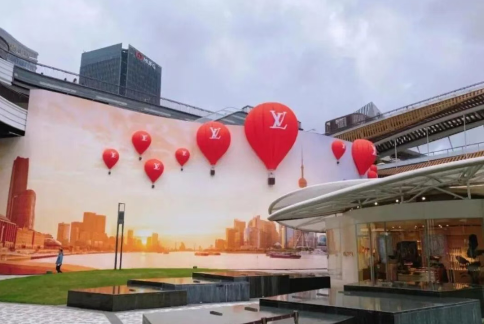 就像前面提到的LV 杭州门店,这家门店几步之外就是杭州西湖,直取旖旎的西湖实景风光印在围挡,品牌很好地将自己与城市地标景观融为一体,不仅拉近了与当地用户的沟通距离,还为游客提供了地标指南,加上抢眼的红色热气球,LV 所蕴含的品牌旅游文化得到了生动诠释。