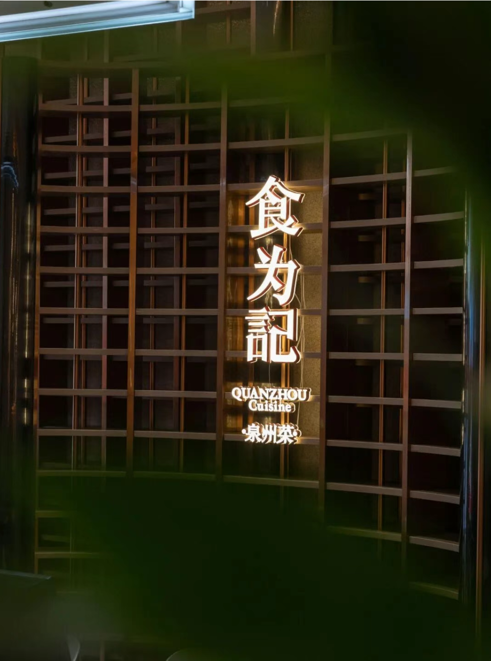 在空间打造上,食为记更强调“宴”的仪式感与“食”的情绪联结。整体空间以暖檀木色为基调,融合古铜金属、石材肌理与现代灯光语汇,营造出温润含蓄的东方雅致气氛。