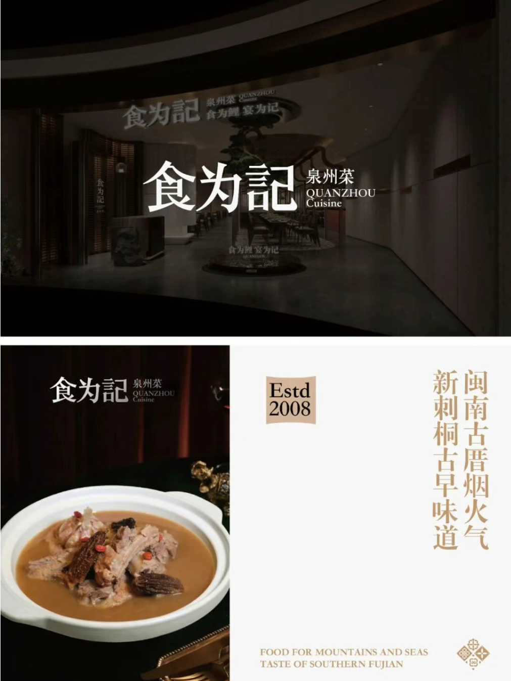 视觉感官上,地方菜更加注重视觉效果,品牌通过以地方菜为出发点,更好的进行文化传播以及城市精神,品牌优势在于“正宗”、“经典”,在这一系列基准下,既要符合消费者对于传统地道菜系的预期,更需要一定程度上突破消费者对于品类的看法,达到设计上的记忆点效果。