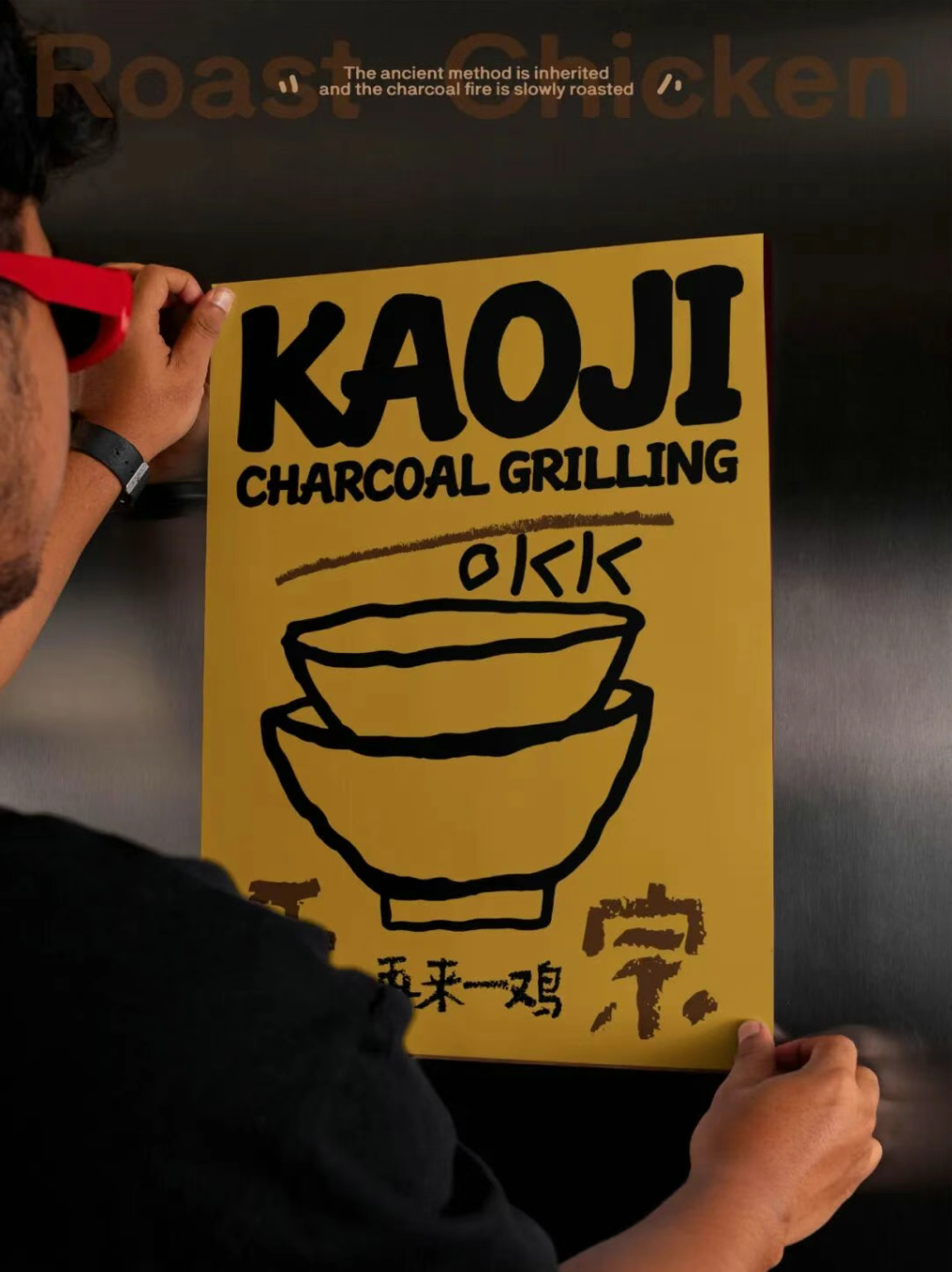 贵州风味美食,烤鸡,展现一个烟火气的餐饮品牌形象,通过视觉设计传递出品牌 “风味人间,果木炭烤” 的理念。