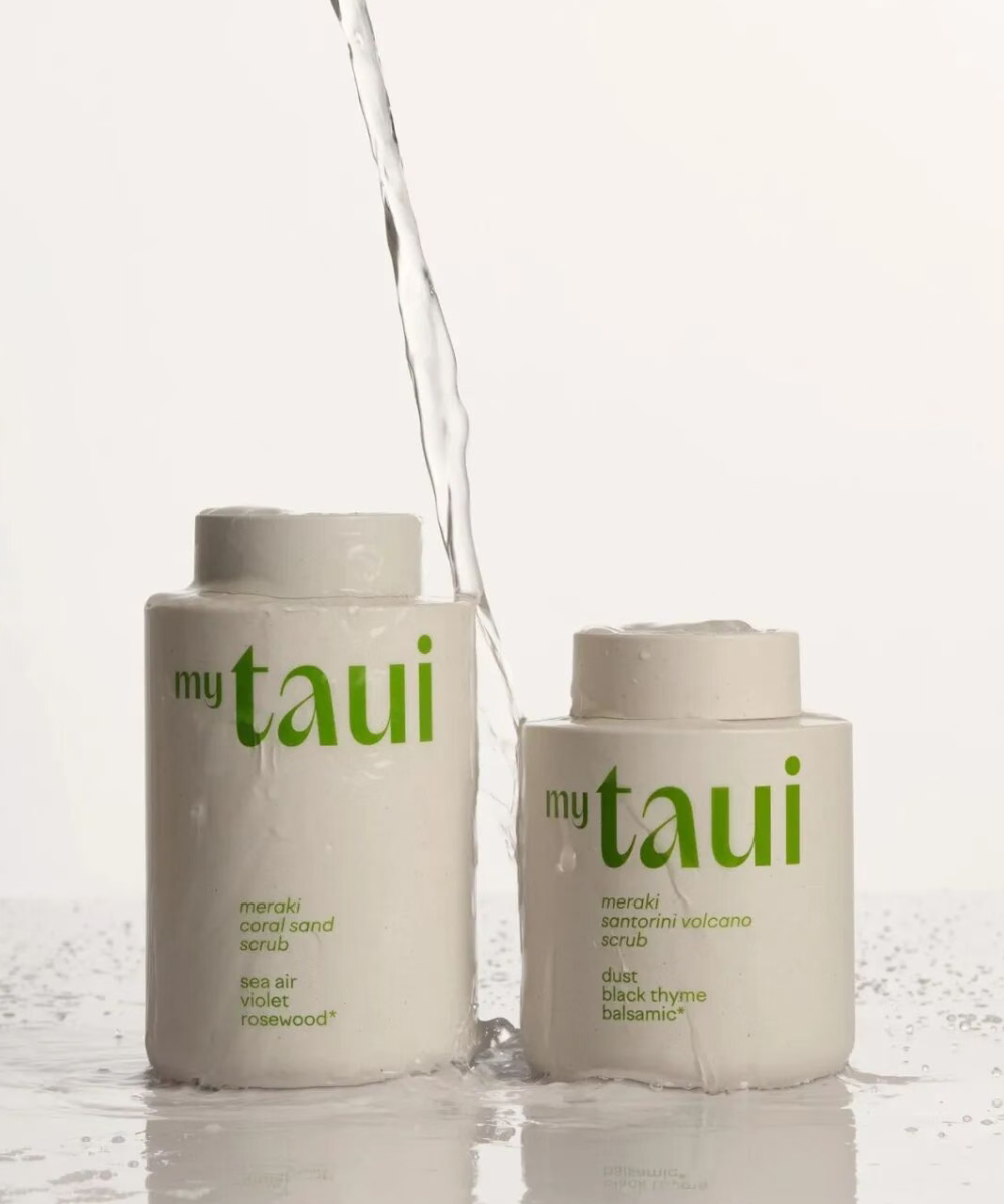 myTAUI 身体护理系列包装,整体设计围绕“护理即仪式”的理念展开,哑光瓶身搭配独特的斑点纹理,不仅营造出极具触感的表面,让人在触碰时便能感受到产品的天然与纯粹,更通过纹理的层次感呼应圣托里尼火山沙等天然成分的原始质感,仿佛将大自然的馈赠浓缩于包装之上。简洁的造型设计刻意弱化多余装饰,以此凸显醒目的品牌标识,让 myTAUI 的品牌形象在第一时间映入消费者眼帘,传递出极简而不简单的品牌态度。