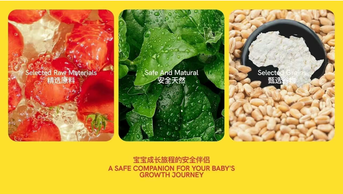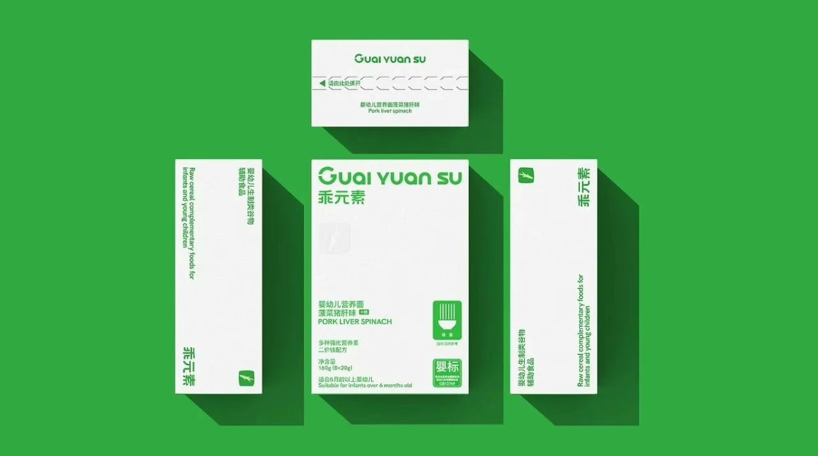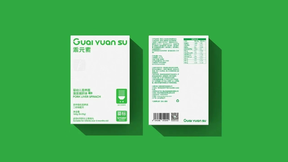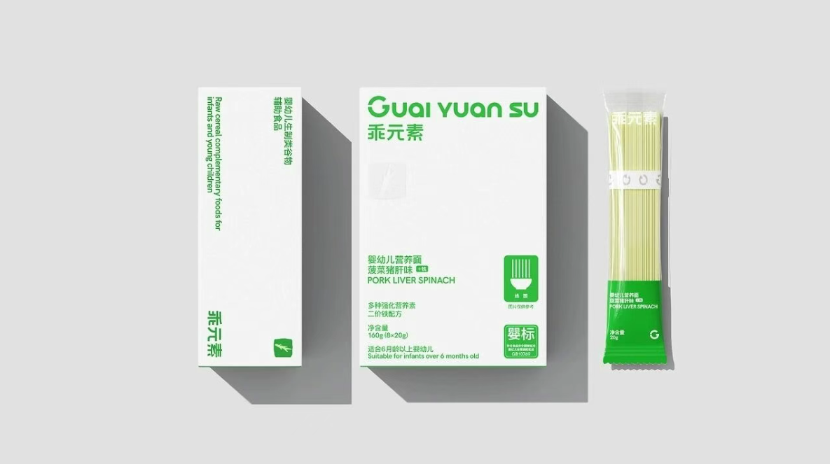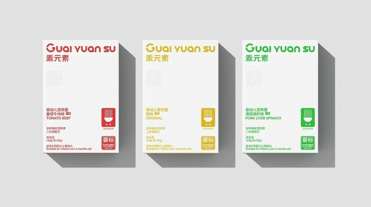 另一方面,整体摒弃繁杂元素,以简洁版式呈现“乖元素”品牌的核心信息,和“配料干净”的产品理念呼应,传递纯净、安全感,让家长直观感受“给宝宝的辅食,和包装一样干净可靠” 。 同时突出“婴标”“多种强化营养素”等关键内容,精准对接宝妈宝爸对辅食营养、合规的关注,用简洁设计把“安全、营养”的产品优势,清晰传递给目标人群 。
