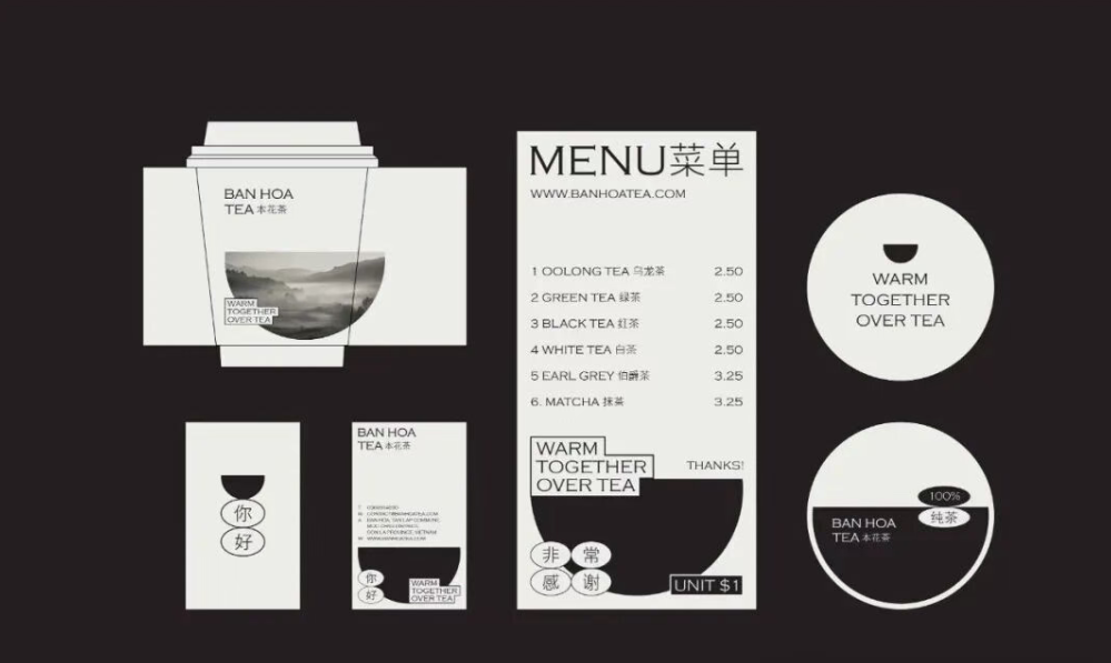本花茶,品牌的标志是一只简单的茶杯形,简洁的标志形式代表了品牌始终将茶叶品质放在首位。单色象征着茶的纯洁性和原创性,同时代表品牌为顾客带来最好的茶,并保留茶的全部自然风味。