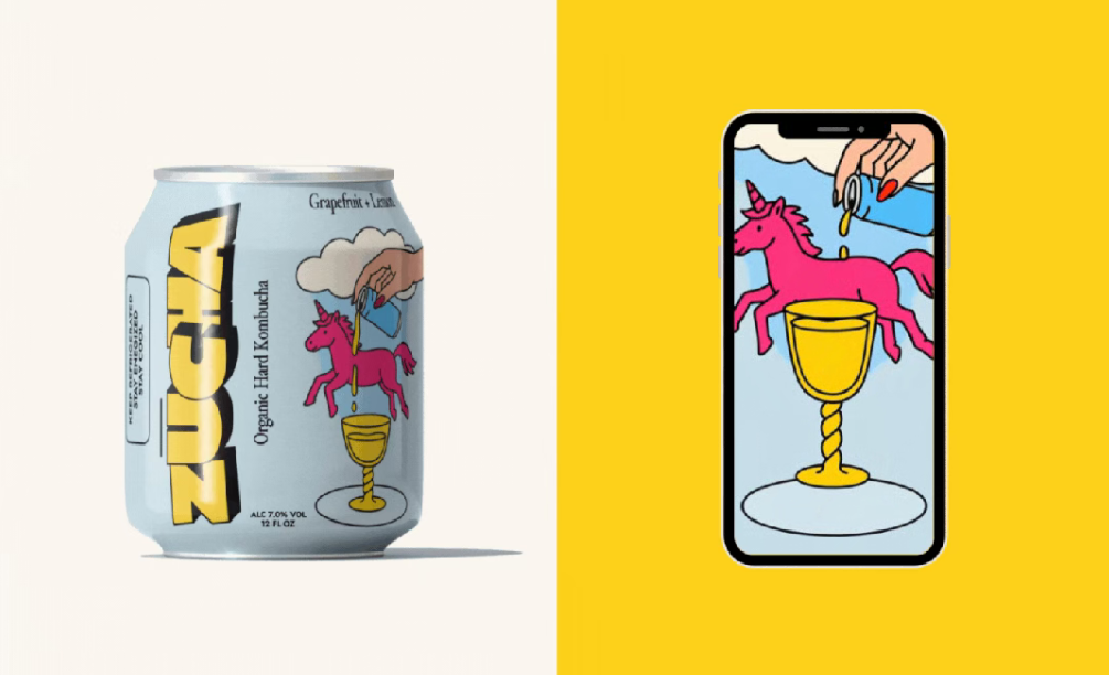 Zūcha 的核心标志是令人印象深刻的吉祥物——独角兽。独角兽不仅仅是一幅有趣的插图,它还体现了该品牌的精神:大胆、出人意料,并且带有一丝魔幻色彩。独角兽不仅仅是装饰品,它更是蜕变的象征。正如康普茶在发酵过程中的不断演变,独角兽也将平凡化为非凡。