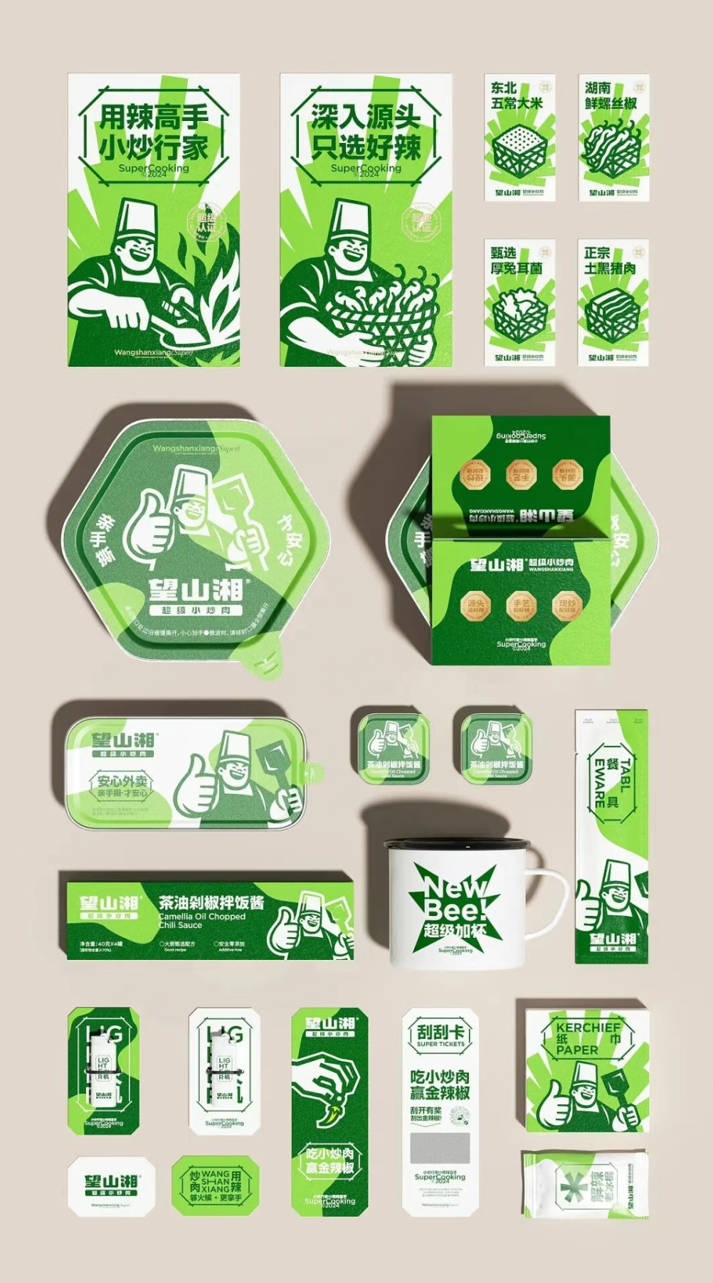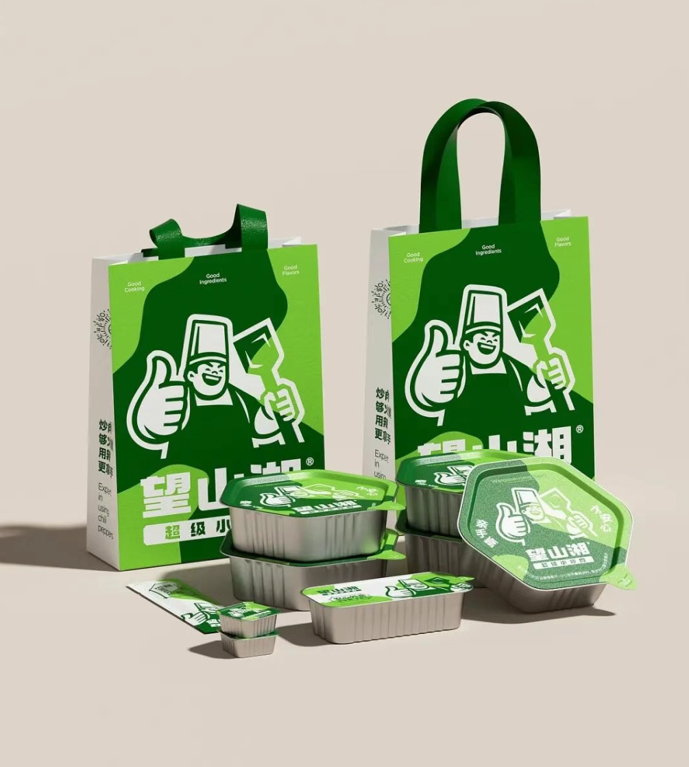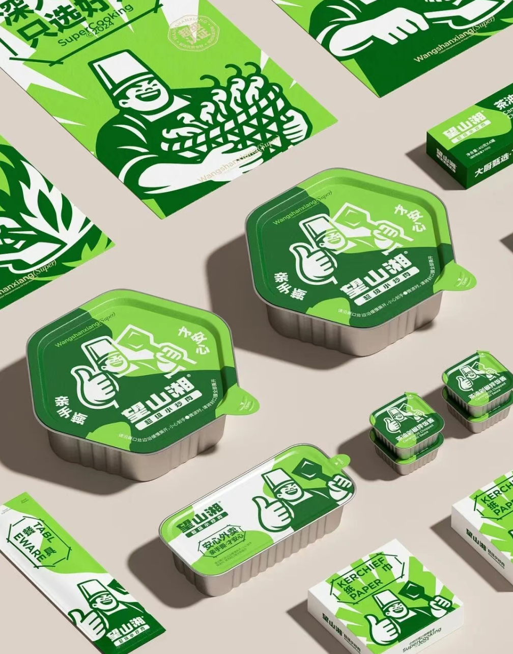视觉设计以 “超级大厨形象” 作为品牌核心视觉符号,通过宽厚的身姿、自信的表情、靠谱的手势以及手握锅铲的动作,传递 “对火候的掌控力、对食材的自信 、以及做出的每一份都好吃” 的底气。