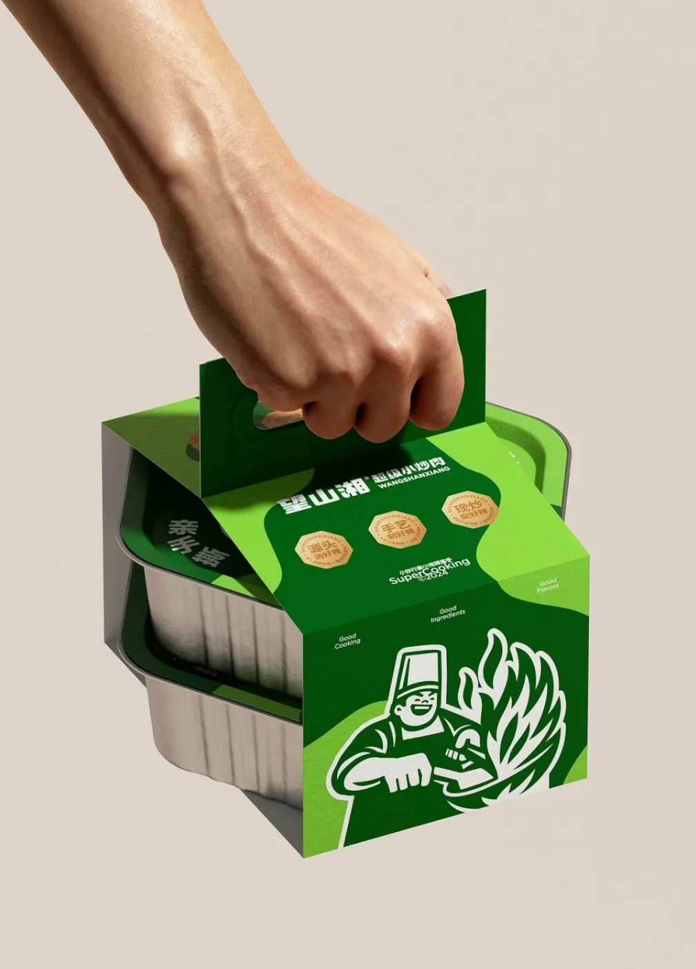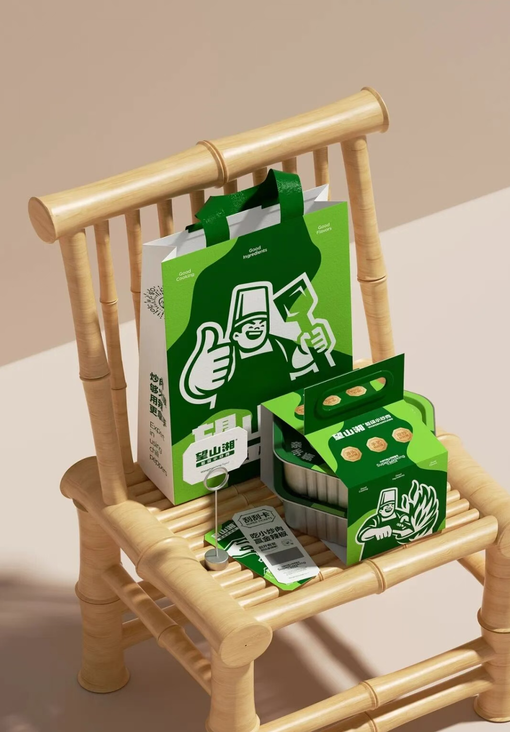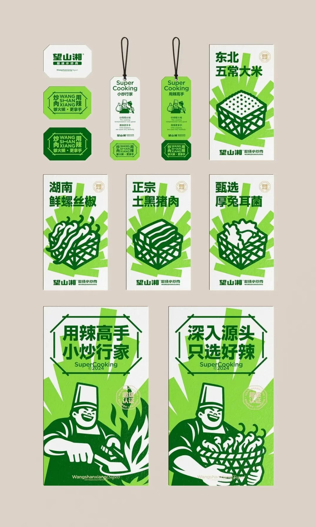 视觉设计以 “超级大厨形象” 作为品牌核心视觉符号,通过宽厚的身姿、自信的表情、靠谱的手势以及手握锅铲的动作,传递 “对火候的掌控力、对食材的自信 、以及做出的每一份都好吃” 的底气。