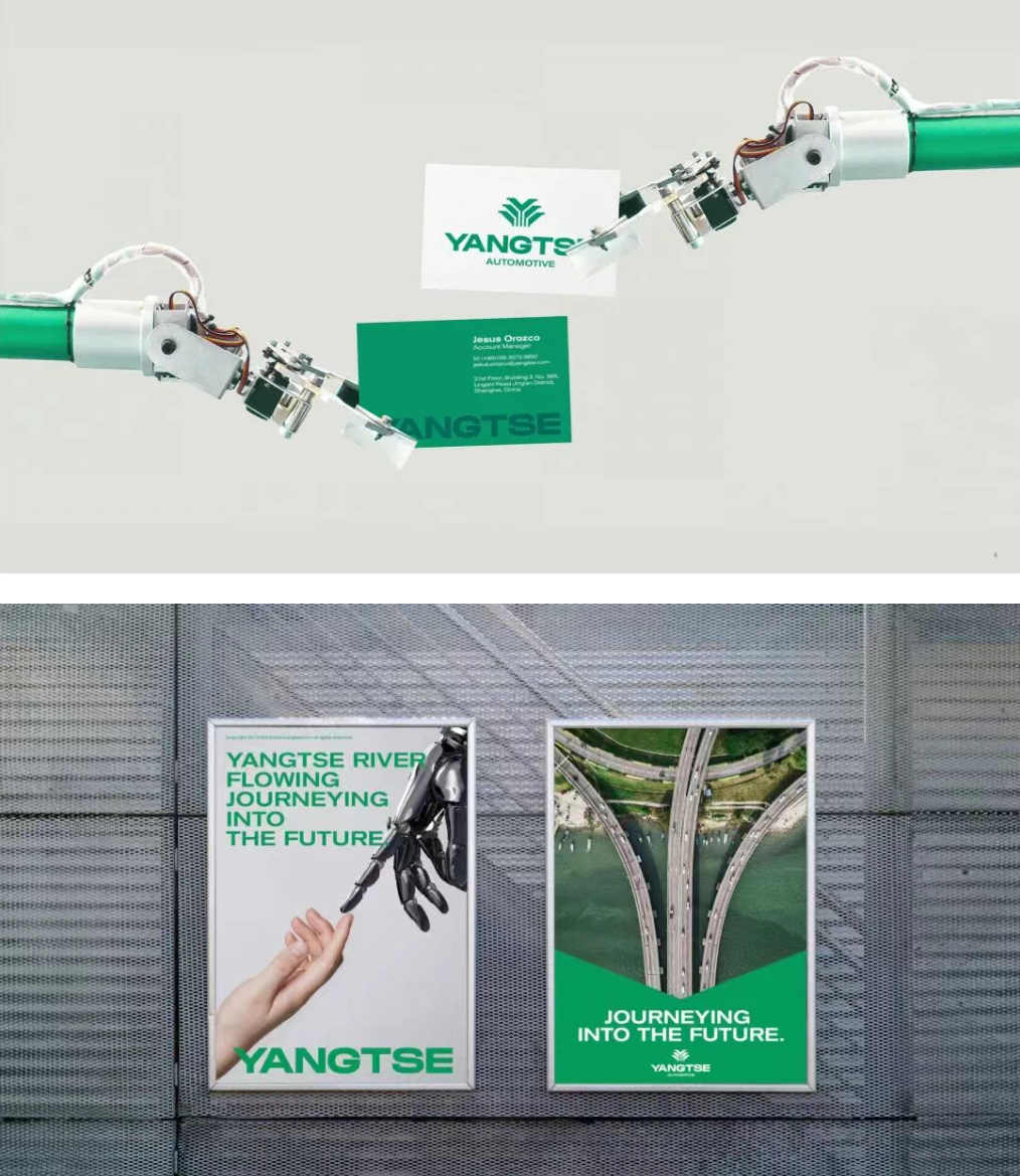 品牌延续其深厚的基因与历史积淀,在科技浪潮中将创新融入企业发展之中,以持续演进的姿态面向未来。正如江水在时光中汇聚力量,品牌以智能科技塑造未来交通的新篇章。设计中融合了江畔山脉的意象、蜿蜒的道路线条以及现代新能源科技元素,展现出智能化与未来感的视觉语言,为客户创造更加便捷、可靠的全新运输时代。