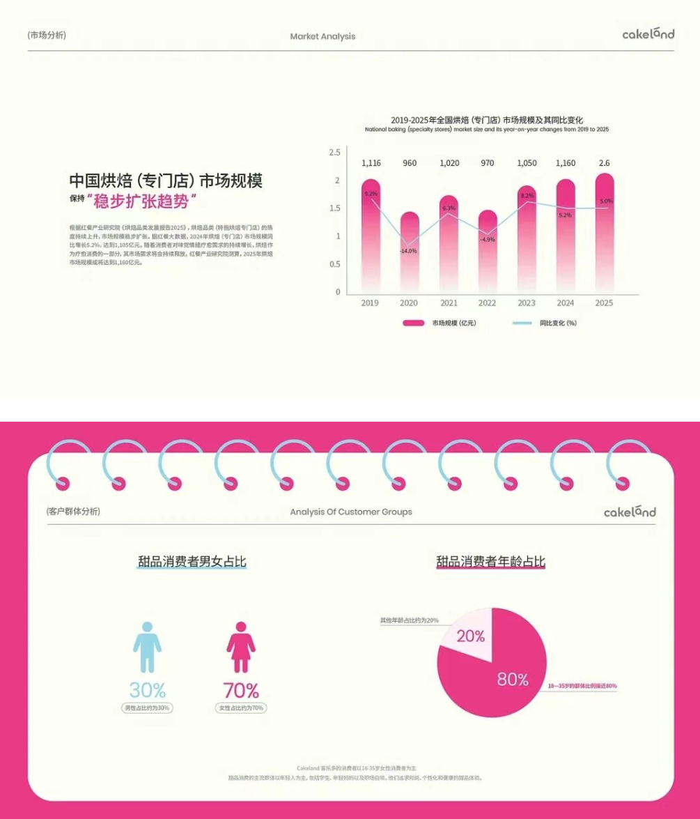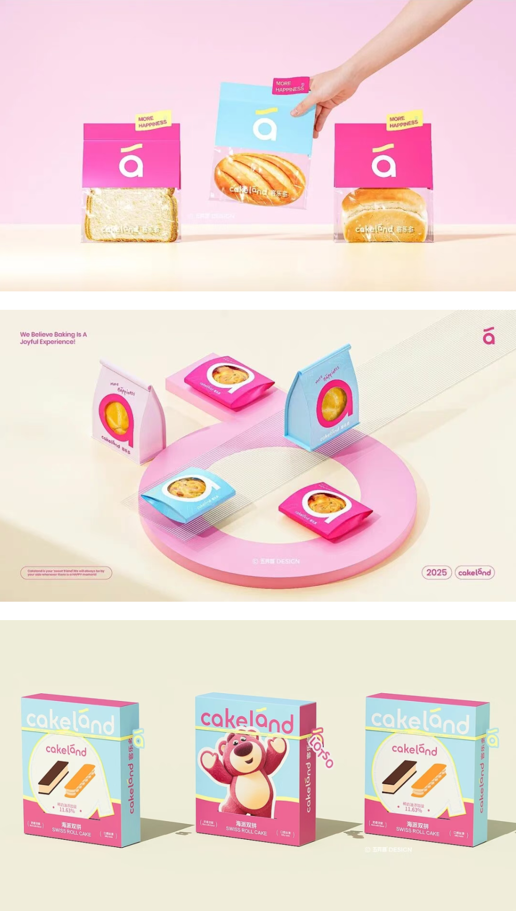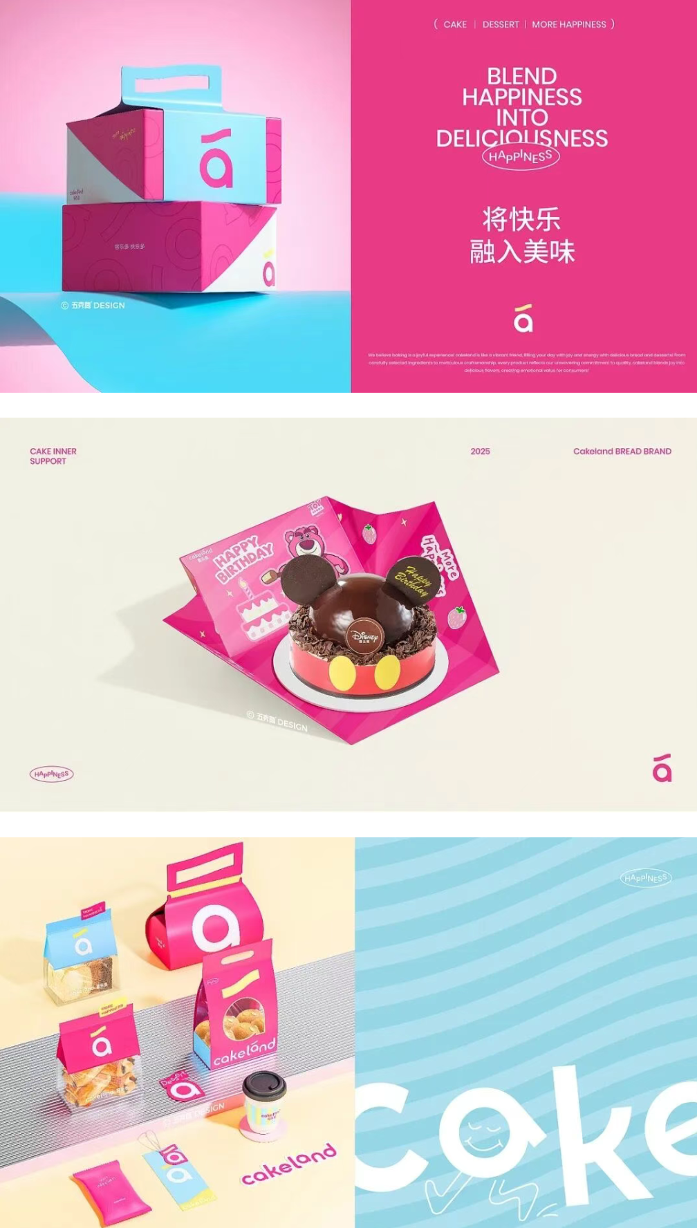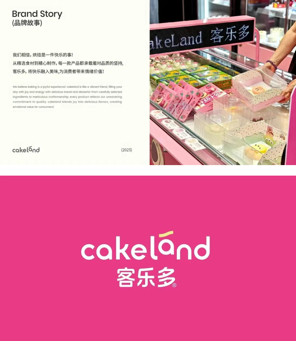 Cakeland客乐多的诞生,源于多方面的资源与机遇推动。自有烘焙工厂+迪士尼烘焙授权商,2大优势成为品牌差异化创新的底气。品牌定位「迪士尼IP赋能+美味创新」的蛋糕烘焙店,为都巿每个角落,带来如同童话般的快乐体验。因此,设计团队为cakeland打造多巴胺品牌风格,在传递快乐价值的同时,注入高级时尚基因,树立独一无二的品牌气质。