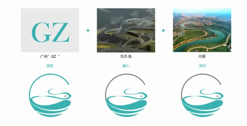 作为整个标识系统的核心,「广州美丽河湖」标识以「GZ」为设计基底,巧妙将河流、游鱼等生态元素融入其中「G」化身「广」字意象形态,如同一条灵动的纽带,将所有生态符号串联起来,既具地域辨识度,又充满设计巧思。