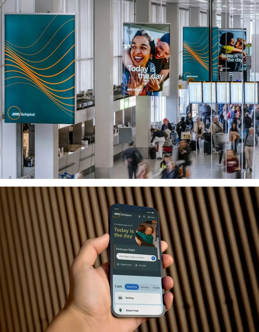 新品牌形象以「Today is the day(今天,就是出发的日子)」为主题,关注旅行中那些充满情感的瞬间,如离别、重逢、启程和新的开始。通过简洁而自信的视觉设计,史基浦机场希望让旅客在出行的每一步都能感受到顺畅、平静与从容。