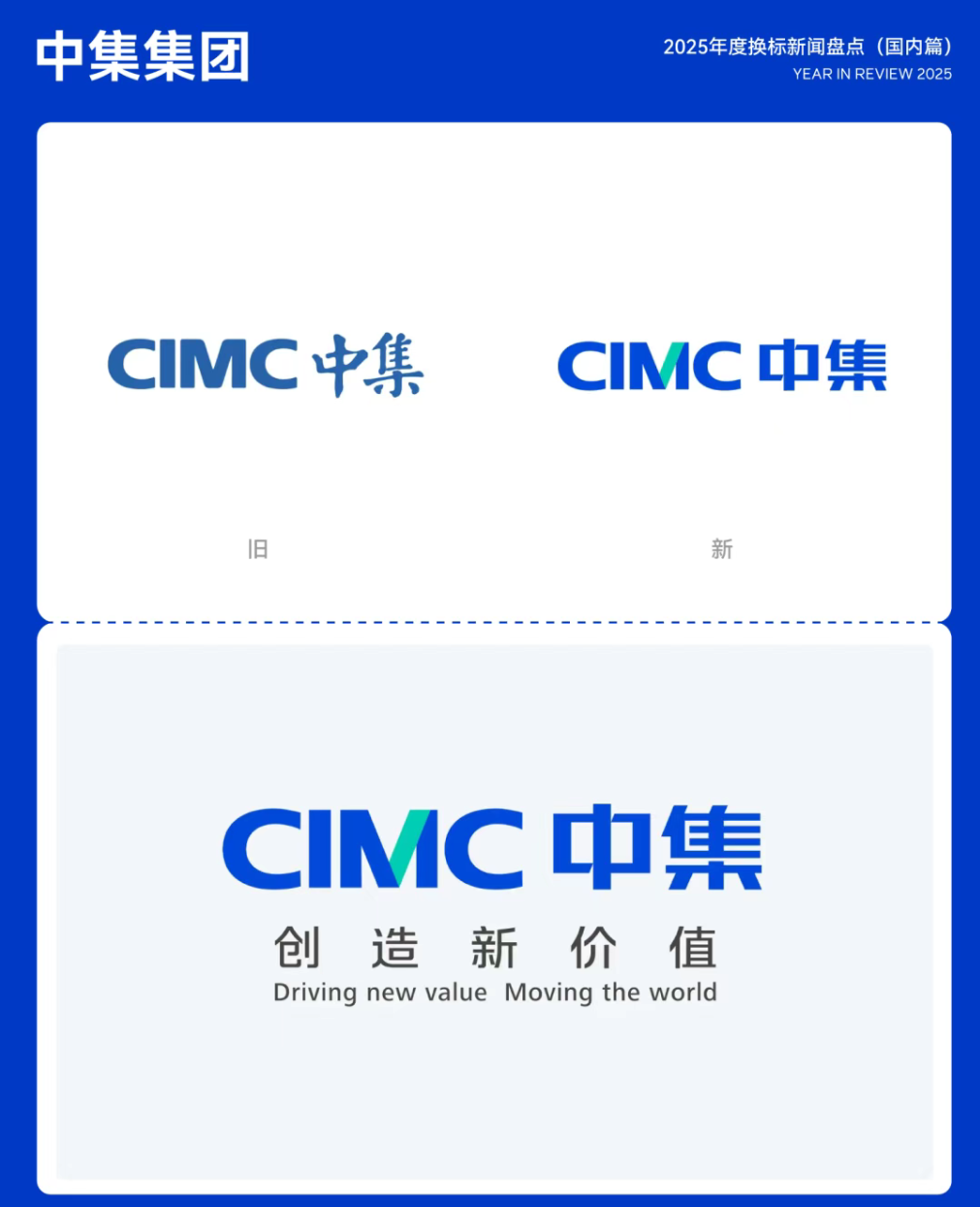 2025年12月5日,中集集团面向全球发布全新品牌LOGO与视觉识别系统,这是中集近十五年来力度最大的一次品牌升级。新LOGO在延续「CIMC 中集」核心识别的基础上,对英文字体进行适度瘦身与细节优化,并提升「中集蓝」的明度,使整体形象更加年轻、有活力,也进一步强化了国际化气质,LOGO着集团迈向世界一流企业的新阶段。16.中集集团