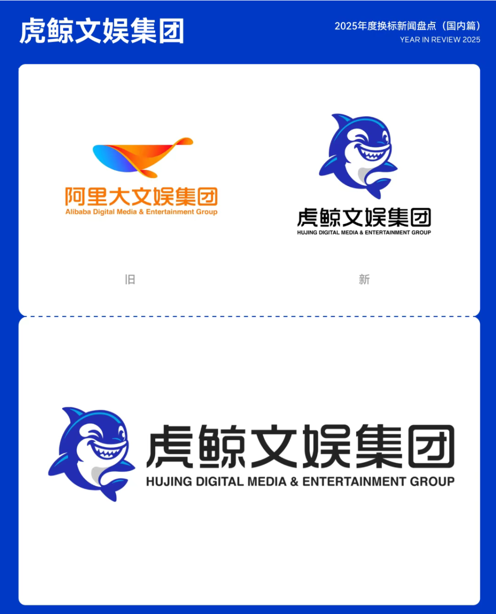 5月21日,阿里巴巴大文娱集团宣布正式更名为虎鲸文娱集团,旗下阿里影业亦计划更名为大麦娱乐。官方表示,「虎鲸」体型庞大却灵活聪慧,善于协作、适应复杂环境且富有情感,与集团倡导的「数智化、共生共荣、创造快乐」的价值观高度契合,也LOGO着「阿里动物园」再添新成员。05.虎鲸文娱集团