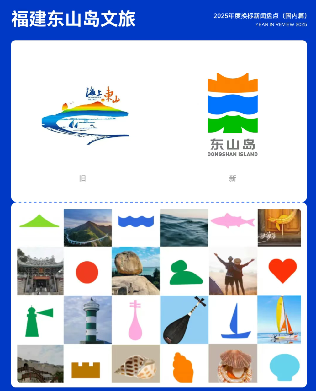 2025年4月9日,福建东山县文化体育和旅游局正式发布东山岛全新品牌 LOGO。新LOGO由原「海上东山」升级为东山岛滨海旅游度假区的专属 LOGO,进一步聚焦滨海旅游主题,体现对东山海岛文明基因的提炼与再表达。13.福建东山岛文旅