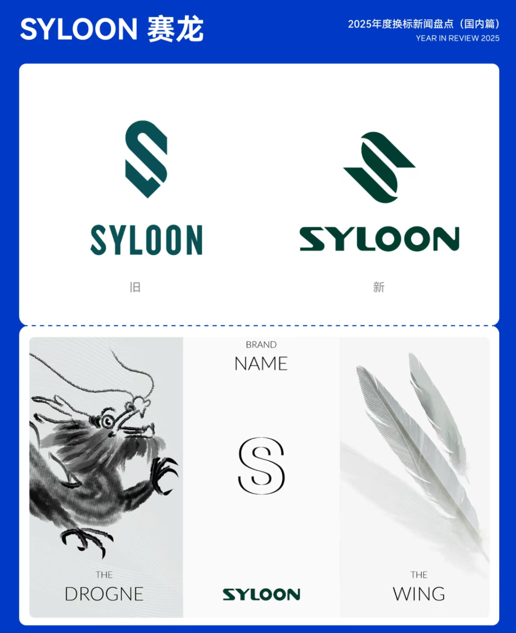SYLOON 赛龙作为中国领先的文具制造与出口企业,深耕行业二十余年,业务覆盖全球 60 余个国家与地区。为加速全球化进程、迈向「世界级产品与服务专家」,赛龙携手 MoCAN 美概推动品牌重塑。新 LOGO 以品牌首字母「S」为核心,融合「龙」的昂扬姿态,刚柔并济,诠释“乘势而上”的进取精神与「龙马精神」的内核,呼应其「Partner way,Easy way」的经营理念。20.SYLOON 赛龙
