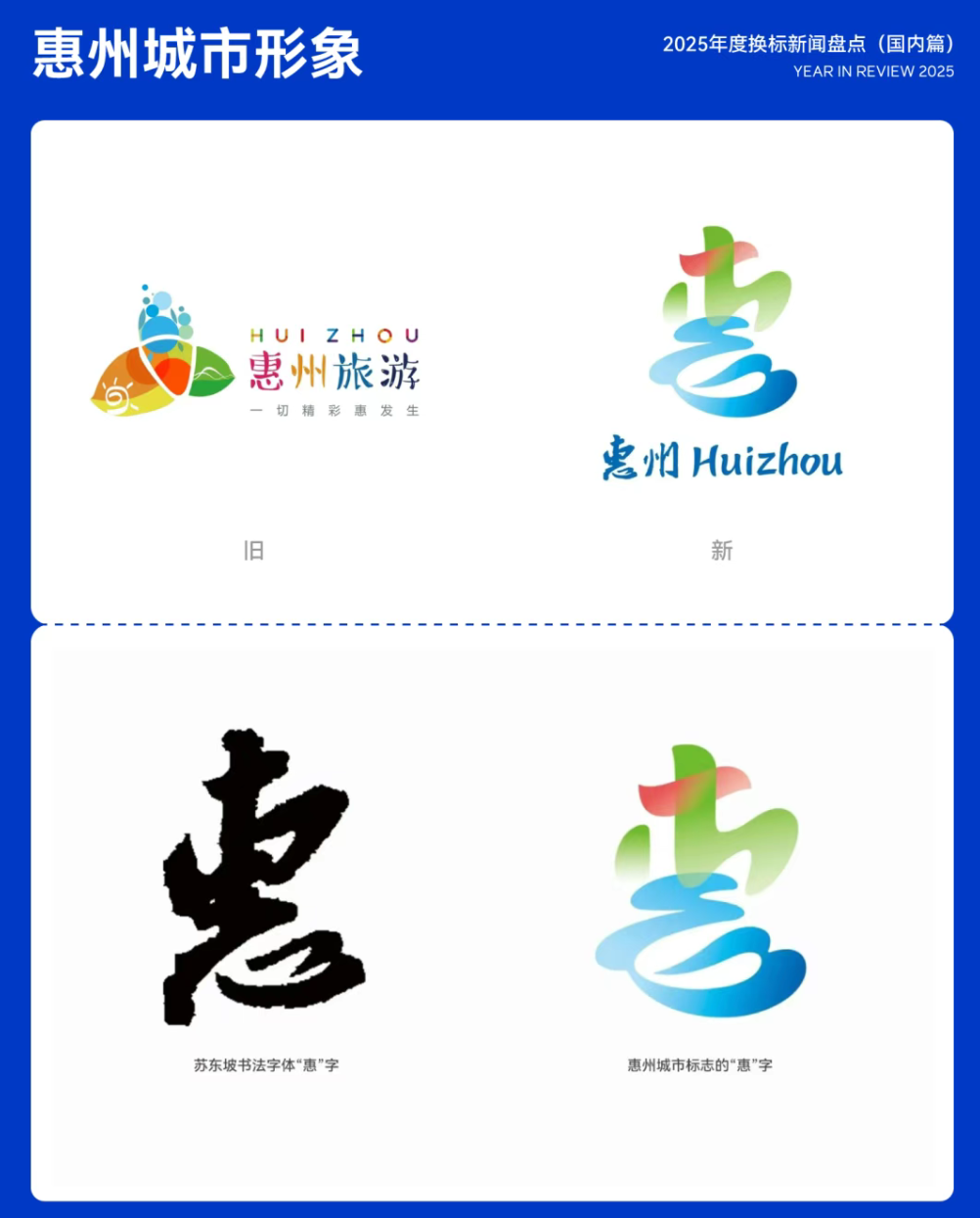 今年3月底,广东惠州发布了全新城市品牌形象LOGO和宣传口号,LOGO由中共惠州市委宣传部与清华大学国家形象传播研究中心合作设计,灵感源于苏东坡书法的「惠」字,融入岭南特色和自然景观,展现城市活力与文化底蕴。口号「惠民之州,惠聚美好」凸显政府承诺与开放包容的城市精神。