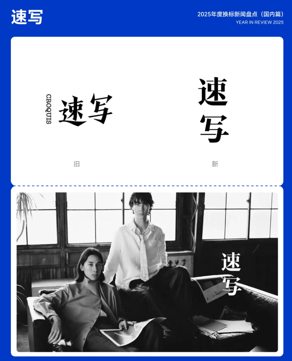 年初,男装设计师品牌「速写」发布由 702design 打造的全新品牌 LOGO。新LOGO对中英文字体进行整体重塑,将宋体字笔触进行几何化处理,在保留宋体典雅气质的同时,强化了字体的现代感与当代审美特征。14.速写
