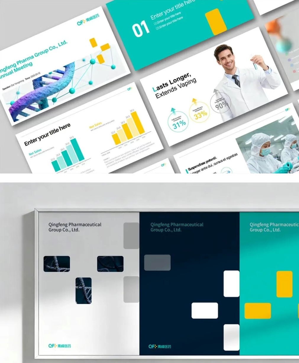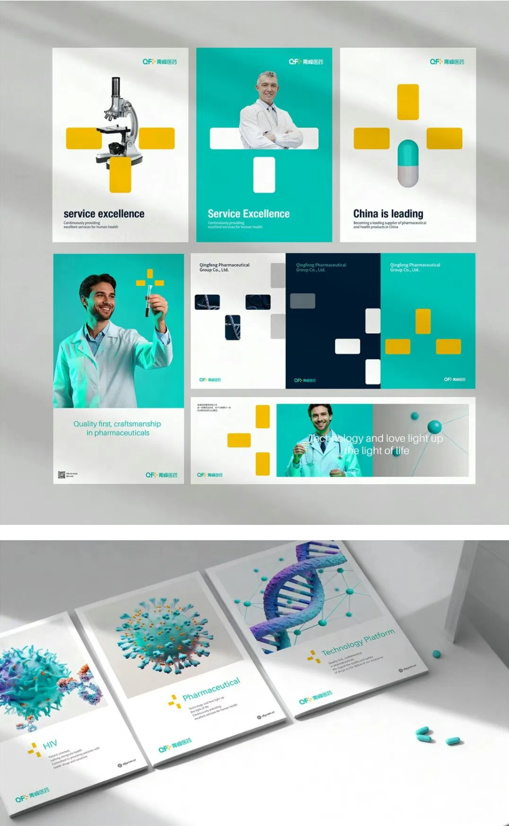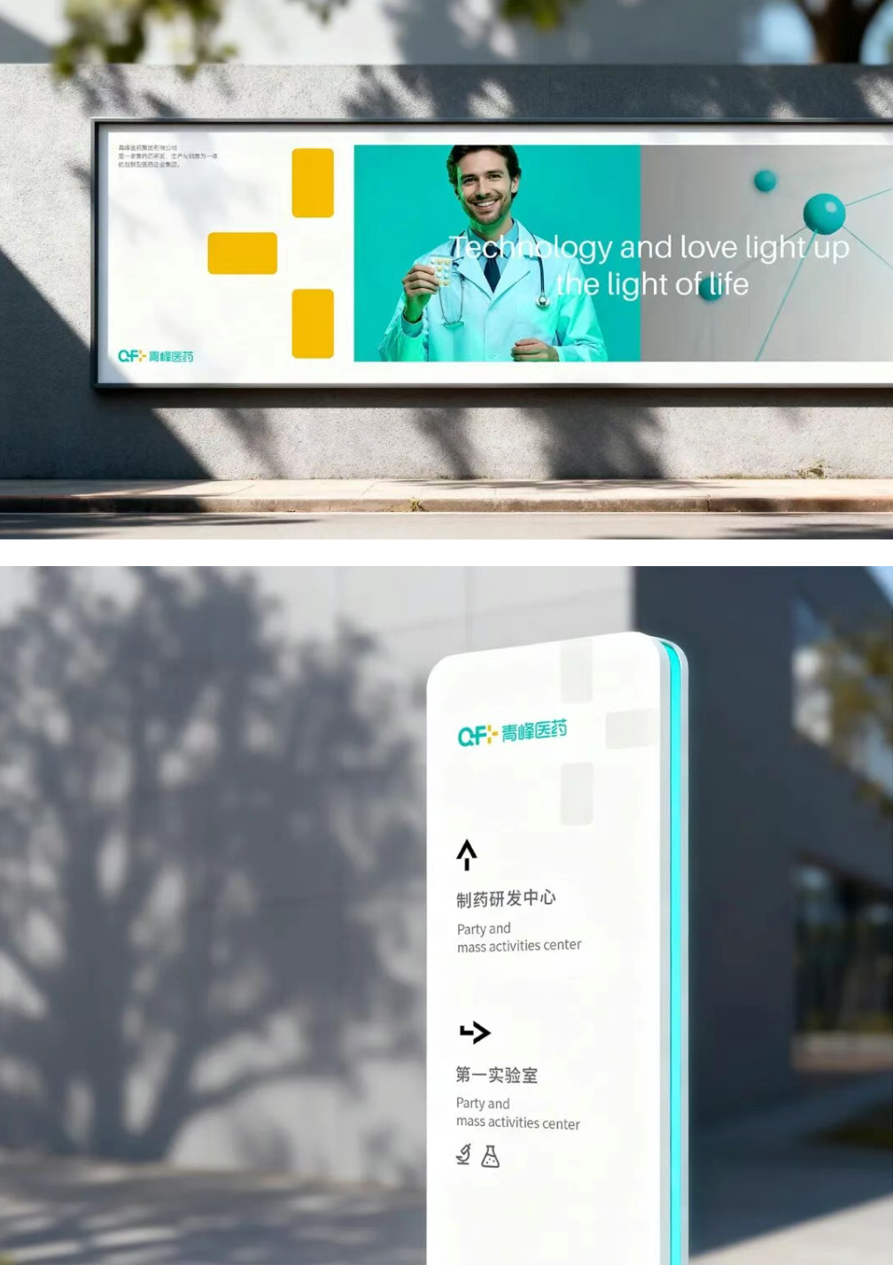 青峰医药全新的视觉系统是集团价值观的集中表达,未来将应用于产品包装的一角、学术资料的一端、研发大楼的一隅……它将无声地融入每一个相关的触点,带来统一、现代而温暖的体验。