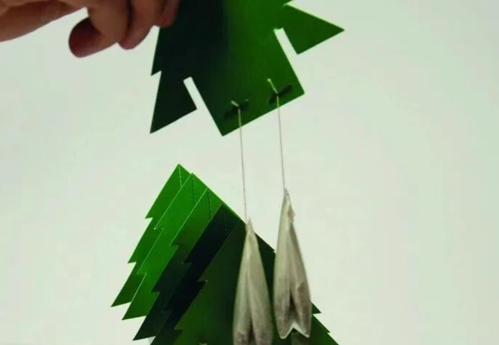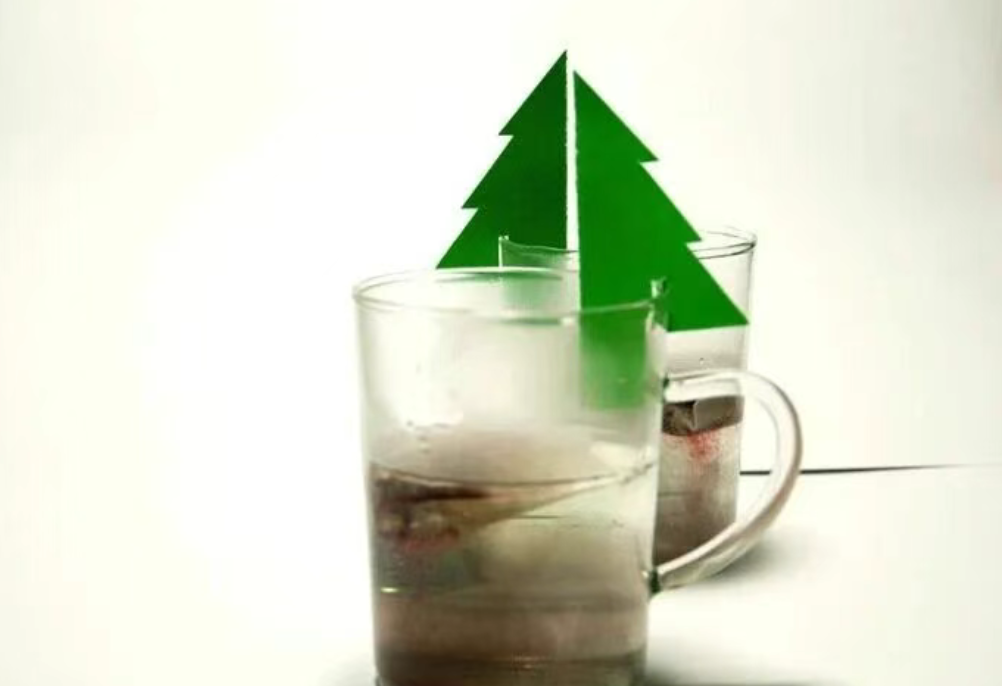 取用茶包时,需两人配合拆分圣诞树造型的茶包,这一趣味的互动形式,将 “团聚” 的理念转化为可参与的实际体验。而冲泡环节也极具巧思,圣诞树造型的茶包可直接作为挂架置于杯沿,营造出别致的节日冲泡氛围,兼顾美观性与实用性。