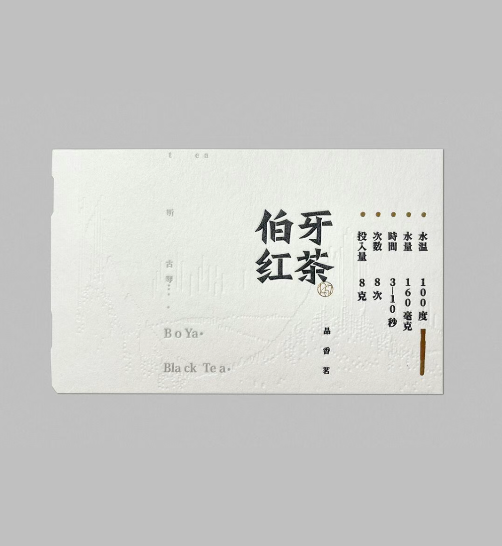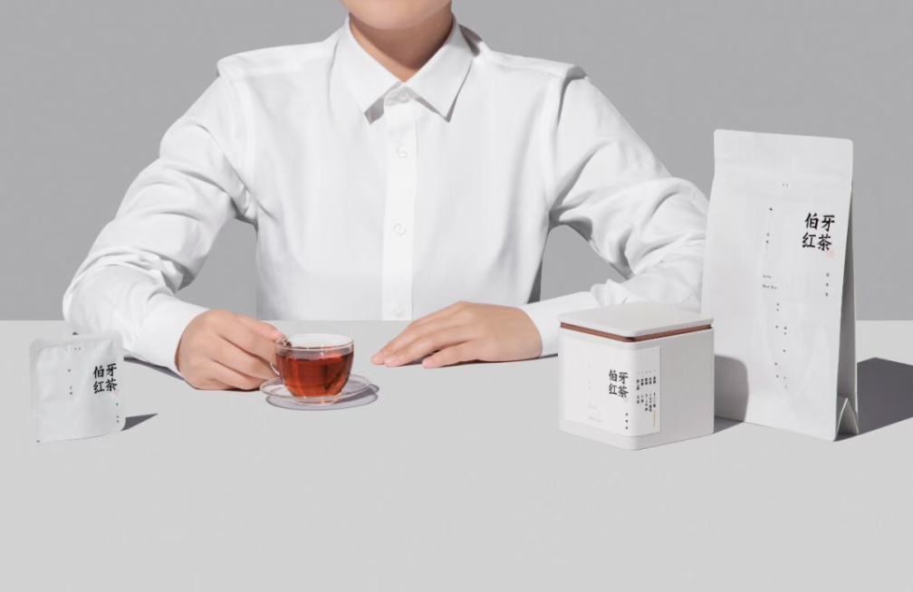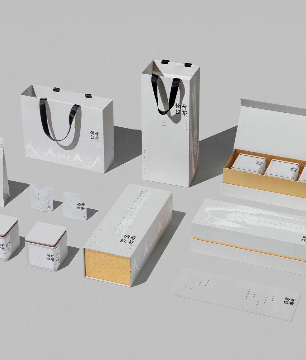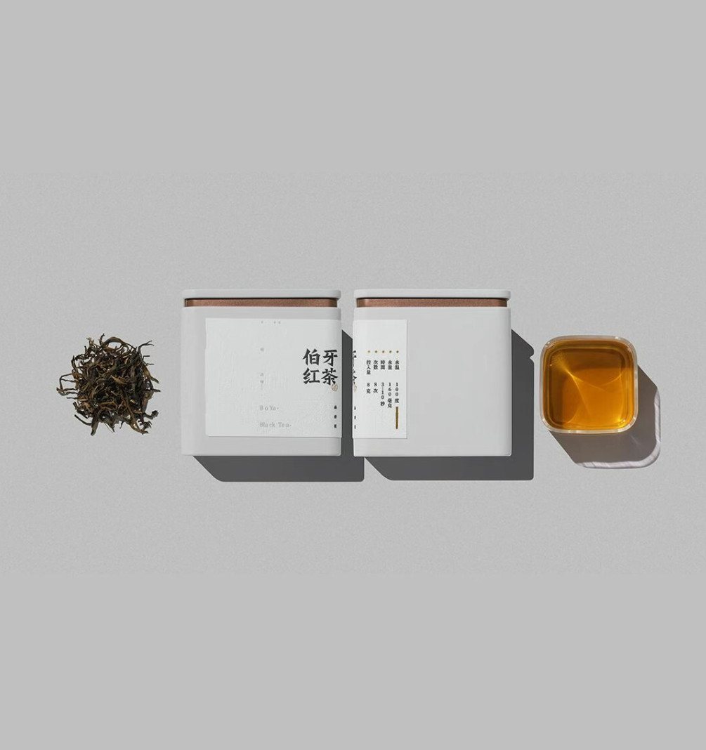 整体的包装设计是传统知音文化与现代极简美学的高阶融合:黑白灰的低饱和主调裹着细腻肌理,浅棕烫金点缀出轻奢质感,既契合红茶的雅致属性,又适配当代高端审美。古琴线条的暗纹藏于包装细节,呼应 “伯牙” 的文化内核,让 “知音茶韵” 不流于表面;泡茶参数的清晰排版、小罐与礼盒的层级设计,既保留了茶礼的实用属性,又以极简版式消解传统茶包装的繁复。把高山流水视觉化呈现以音律的方式表达。将古琴外形镂空成封套,取出礼盒好像谱写一首高山流水。让人在品茶前,便能感受到那份穿越时空的自然韵律。